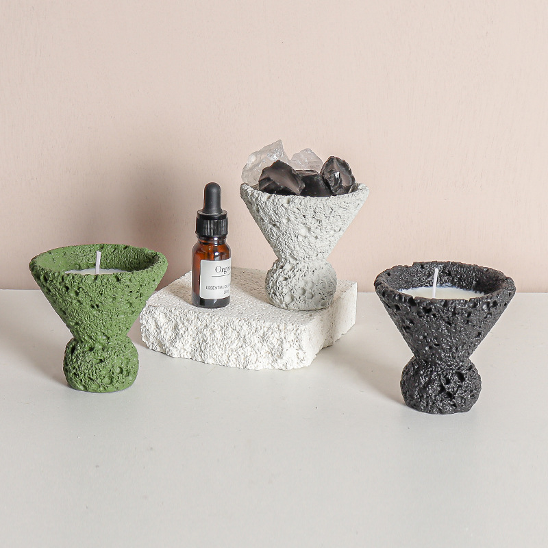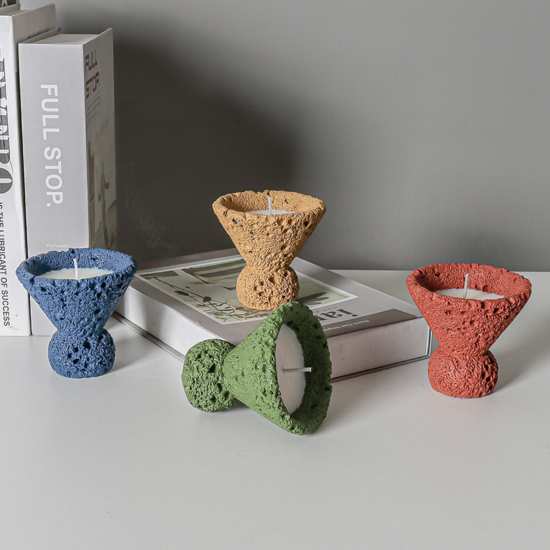 表面の粗い質感が手仕事の温もりを感じさせ、一つ一つ異なる表情を楽しめるキャンドルです。