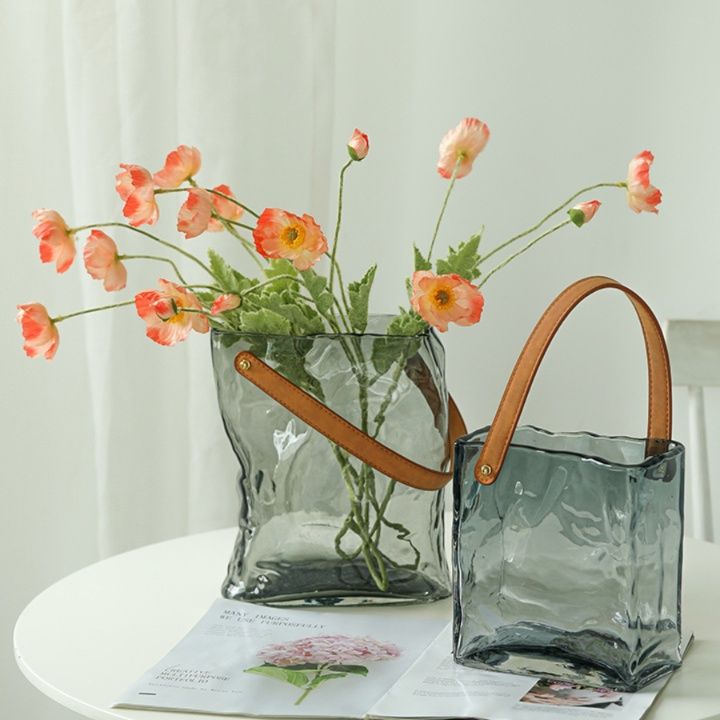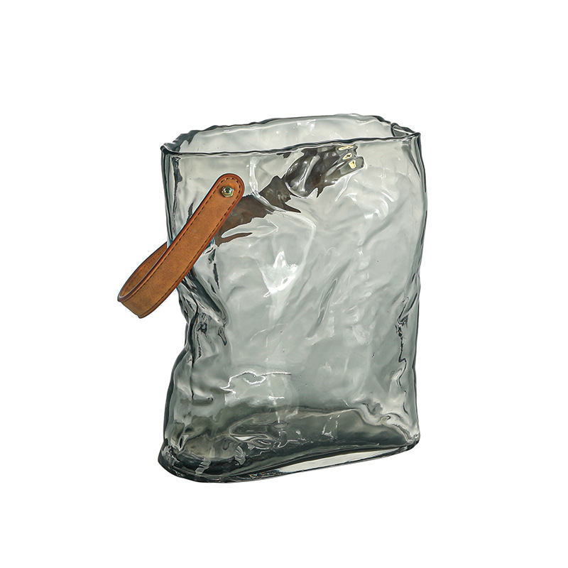 まるでハンドバッグのような遊び心溢れるデザインの硝子花瓶です。