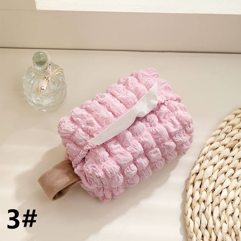 便利な取っ手付きでどこでも持ち運びができるティッシュケースです。