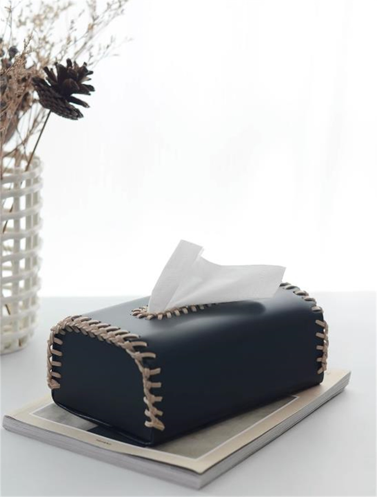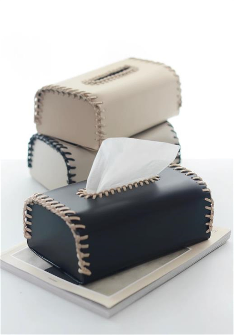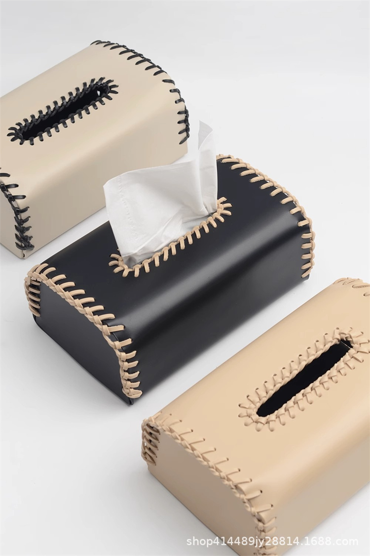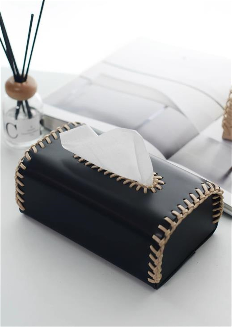 手作りの温もりが感じられる皮革製ティシュケースです。