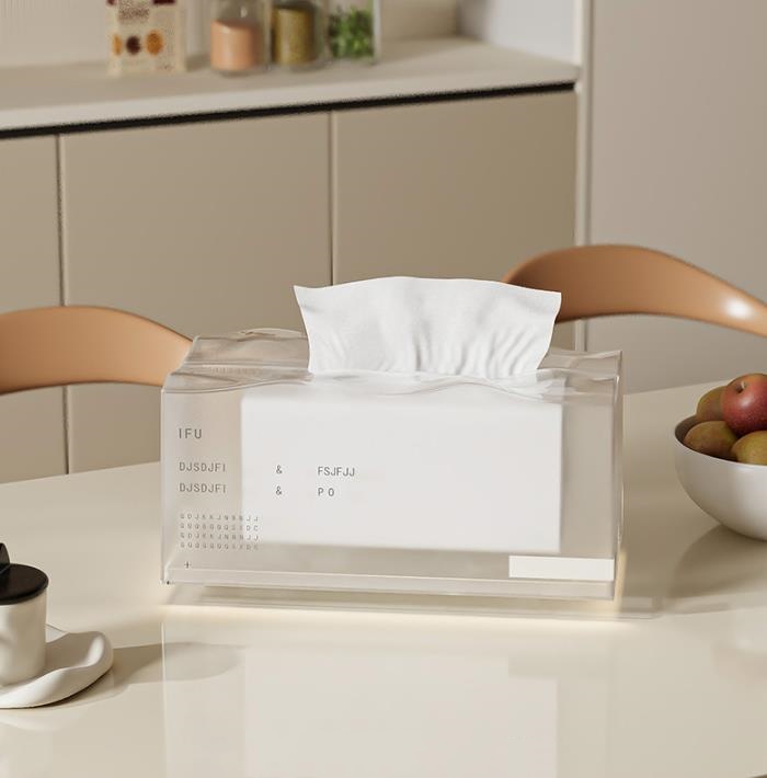 洗練された透明アクリル素材を使用したモダンなティッシュケースです。