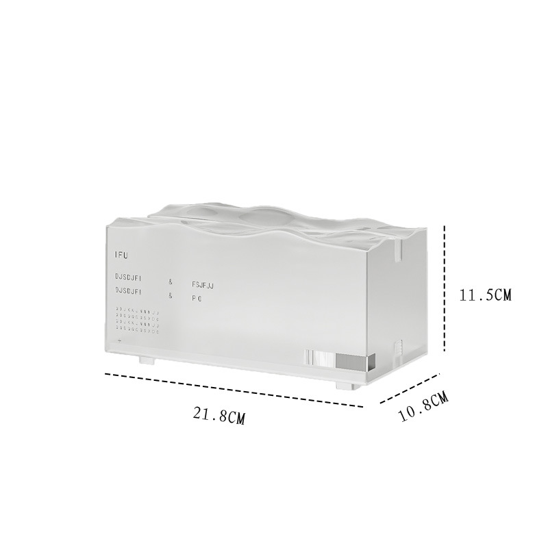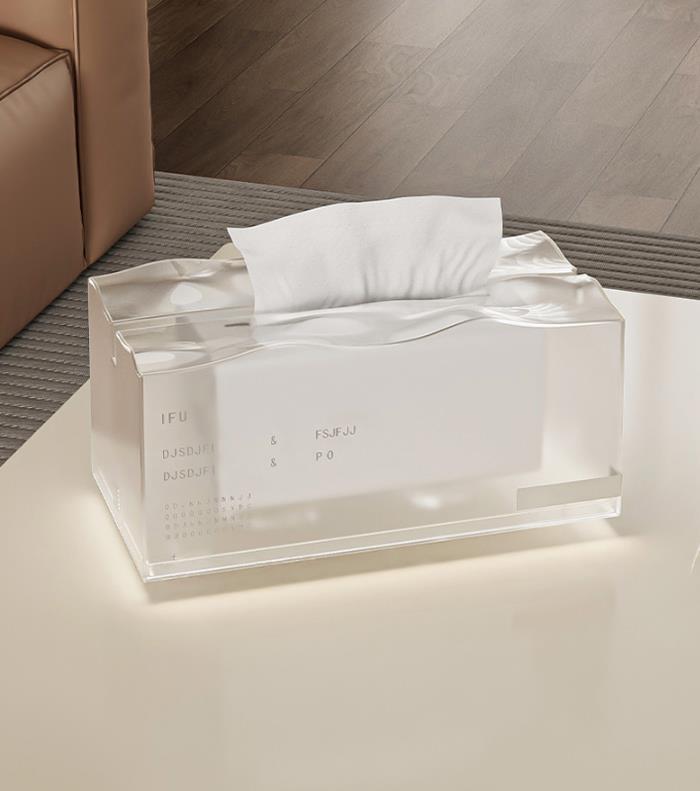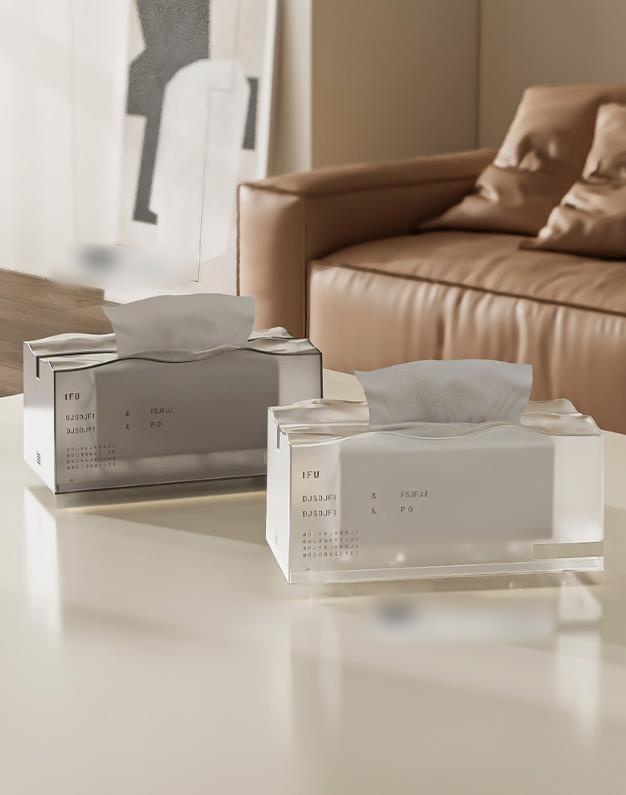 洗練された透明アクリル素材を使用したモダンなティッシュケースです。 リビングやダイニングテーブルを美しく彩るインテリア雑貨として最適。 氷山をイメージした芸術的なデザインで、お部屋の雰囲気を格上げします。 実用性と装飾性を兼ね備えた卓上置物です。