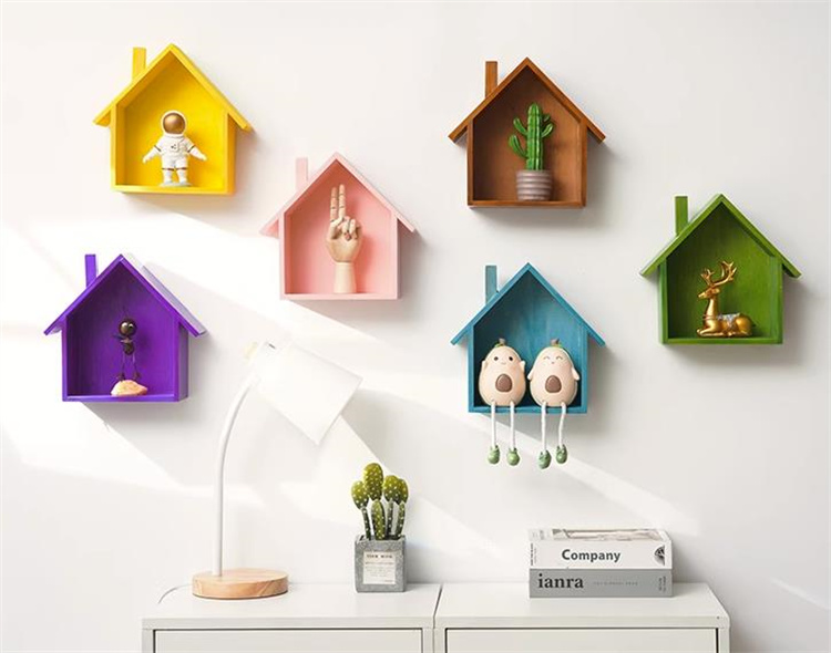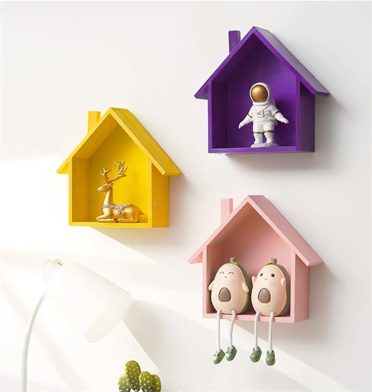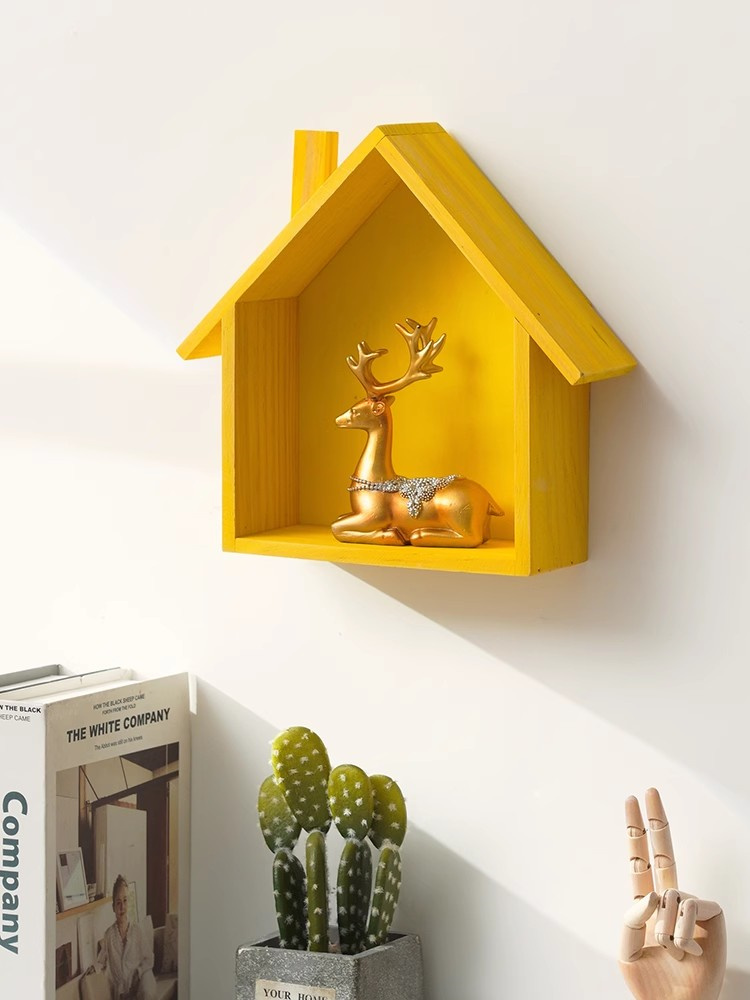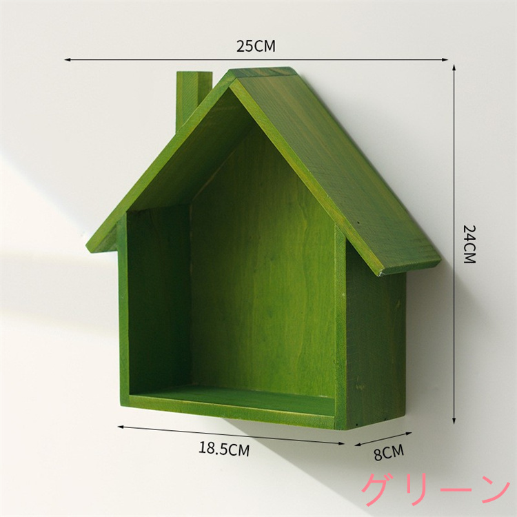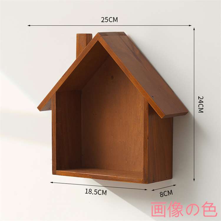 かわいらしい家の形をした木製の壁掛け飾り棚です。