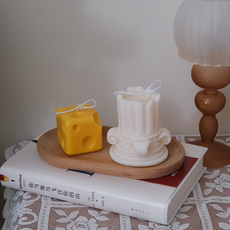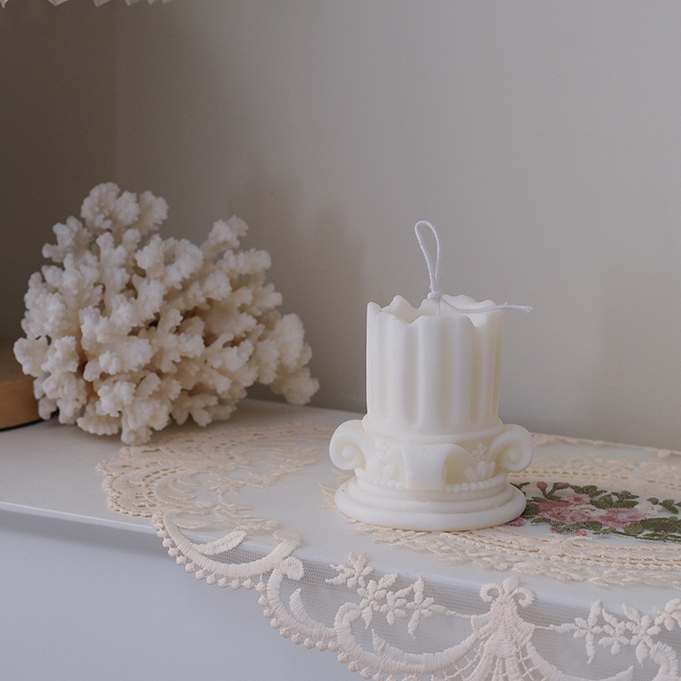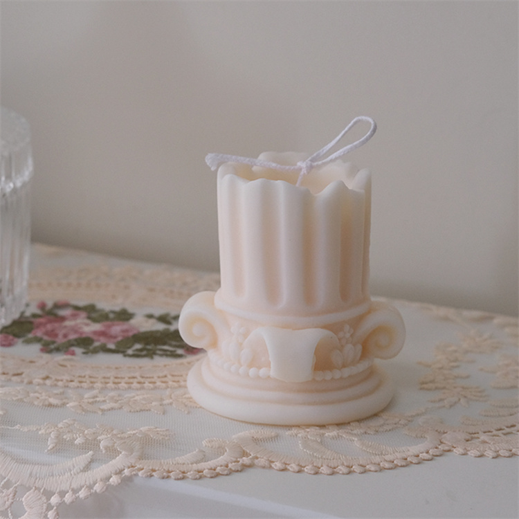 古典的な柱をモチーフにした手作りの香り付きキャンドルです。